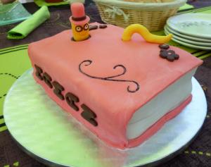 Gâteau de fête des mères pour une maman dévoreuse de livre et anglophile (Book worm (ver de bibliothèque) est l’équivalent anglais de l’expression « Rat de bibliothèque »)