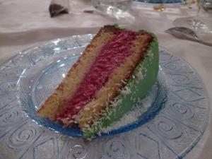 Moelleux à la framboise et à la rhubarbe pour la naissance d’une petite fille.