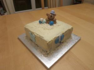 En attendant, Hugo, mon futur petit cousin : damier chocolat et vanille, glaçage mascarpone et chocolat blanc.