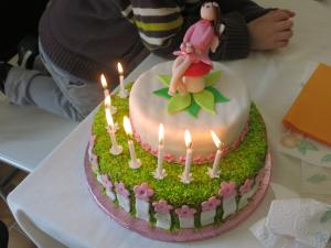 On continue pour les 8 ans de Clara en famille avec un bavarois aux fruits rouges et un gâteau PCU aux fraises.